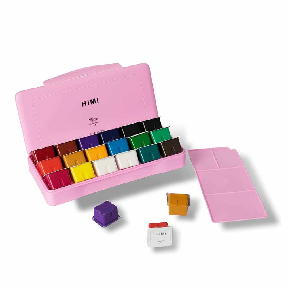 HIMI Juego de pintura Gouache: 18 colores vibrantes con paleta de estuche portátil, ideal para lienzo, madera, tela, yeso, piedra y clavos.